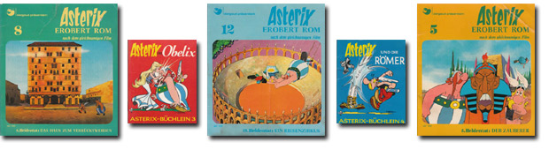 Zum Trickfilm ASTERIX erobert Rom wurde eine 12-teilige Reihe im Format 19 x 17 cm herausgegeben (1976).
